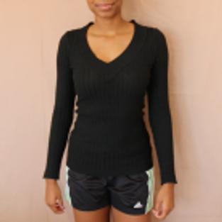 Cut a line directly down the center of the top layer of the front of the shirt/sweater. You will now have 2 flaps on the front.